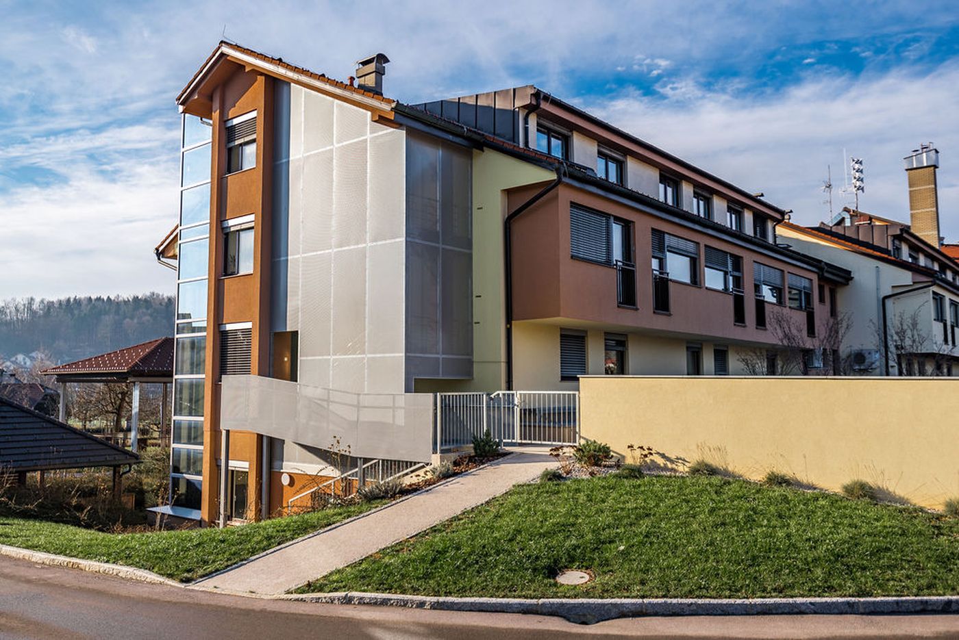 Za izvedbo celovitega fasadnega ovoja dobavimo in montiramo tudi pripadajoče nosilno ogrodje, zaključne kleparske elemente, stavbno pohištvo …